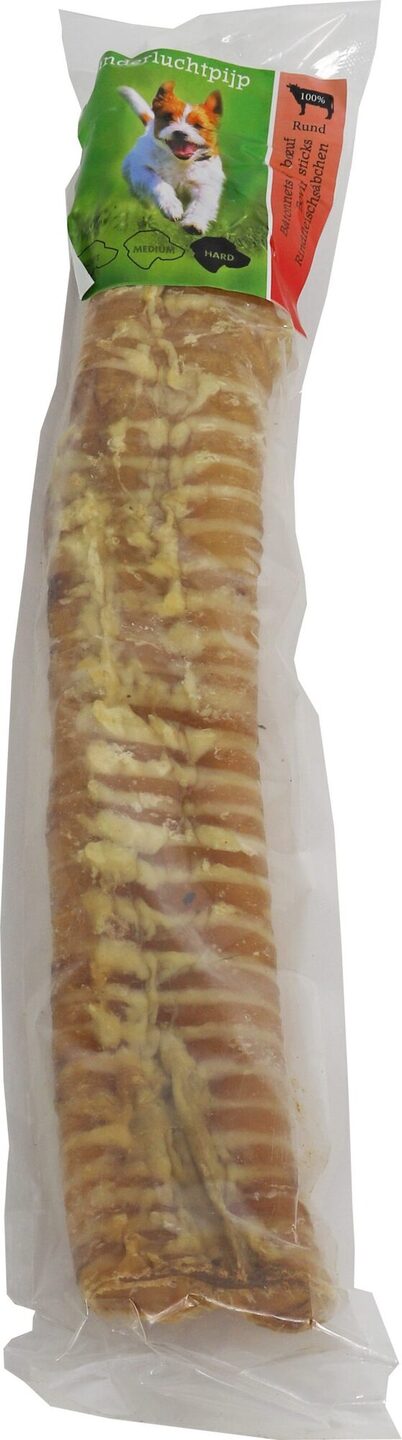 Deze runderluchtpijp is 100% natuurlijk, glutenvrij en zonder toevoegingsmiddelen. De luchtpijp is geschikt voor honden met een gemiddelde kauwkracht.