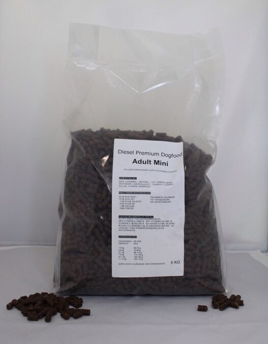 De Diesel Mini Adult hondenbrok is een hondenbrok gemaakt zonder tarwe. Omdat steeds meer honden gevoelig reageren op tarwe is deze samengestelde brok met mais een goede basis voor vele honden.