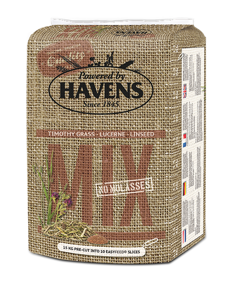 Havens mix is een ruwvoermix bestaande uit timotheegras, luzerne en lijnzaadproducten en is laag in suikers en zetmeel.