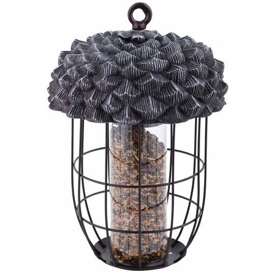 Aan de binnenzijde van deze eikel zit een silo die het voer beschermd tegen weersinvloeden en handig doseert. Deze voedersilo is te vullen door de bovenzijde eraf te draaien. Hij heeft een afmeting van circa 20 x 20 x 29 centimeter.