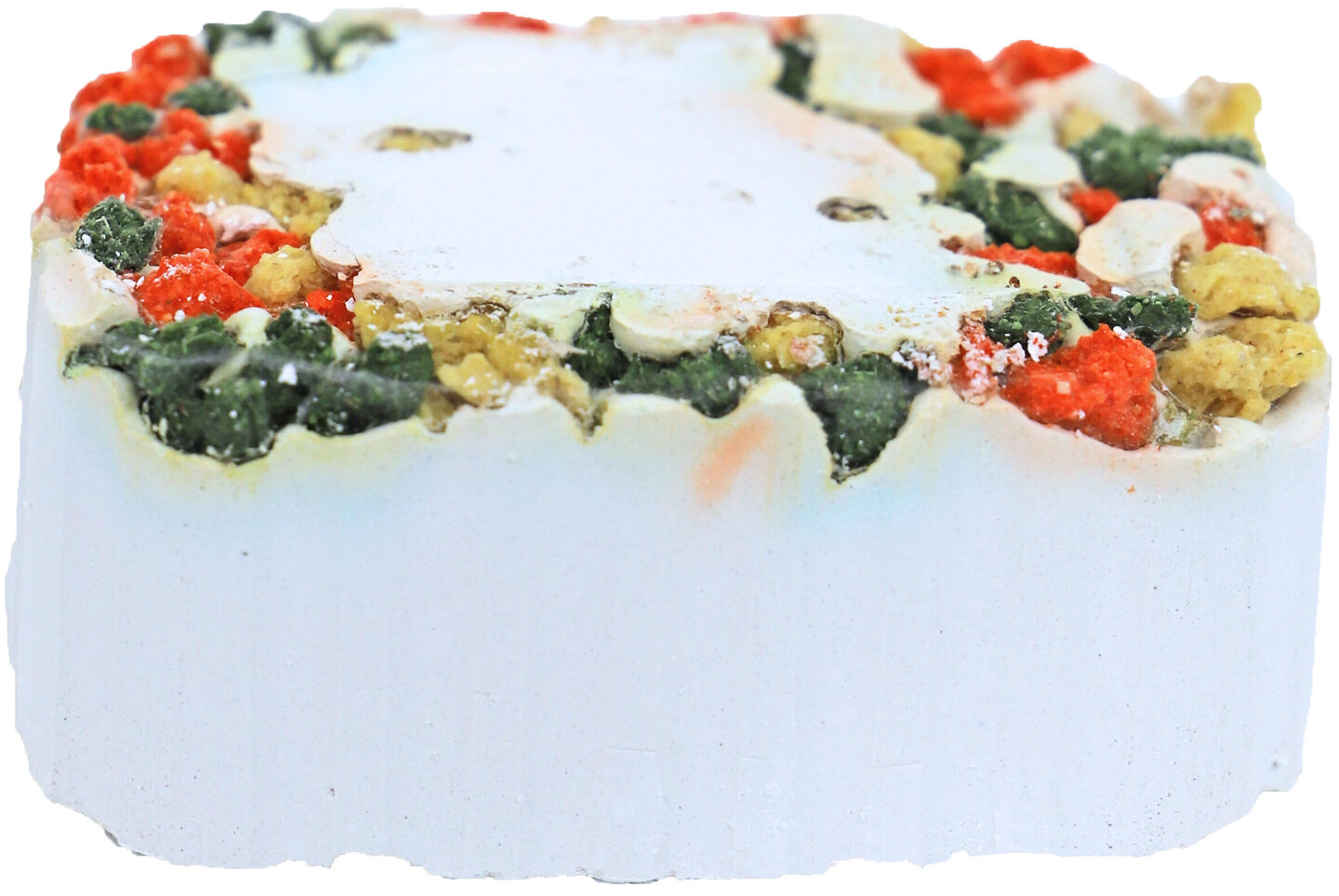 In het mineralenblok zijn mais en brokjes verwerkt om het extra aantrekkelijk te maken.