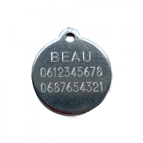 Deze penning is 22 mm diameter. Het is mogelijk om 3 regels tekst te plaatsen van maximaal 12 tekens.