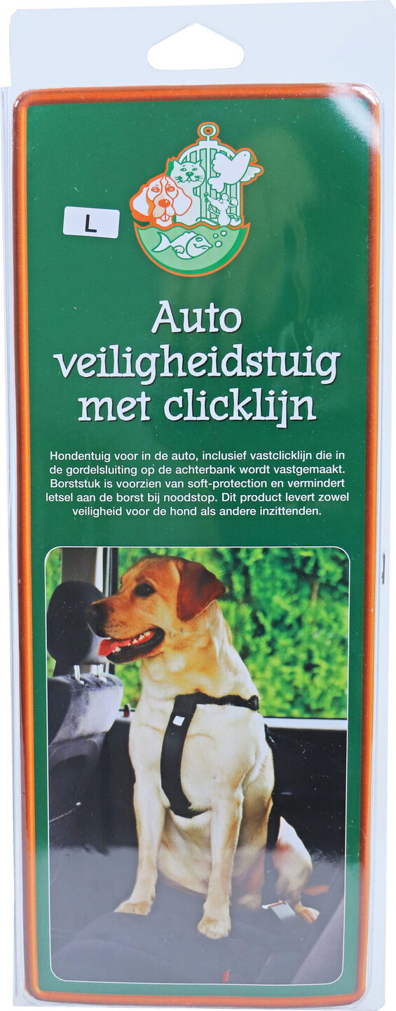 Dit hondentuig voor in de auto wordt geleverd inclusief clicklijn die in de gordelsluiting kan worden vastgemaakt. Het borststuk is voorzien van soft-protection.