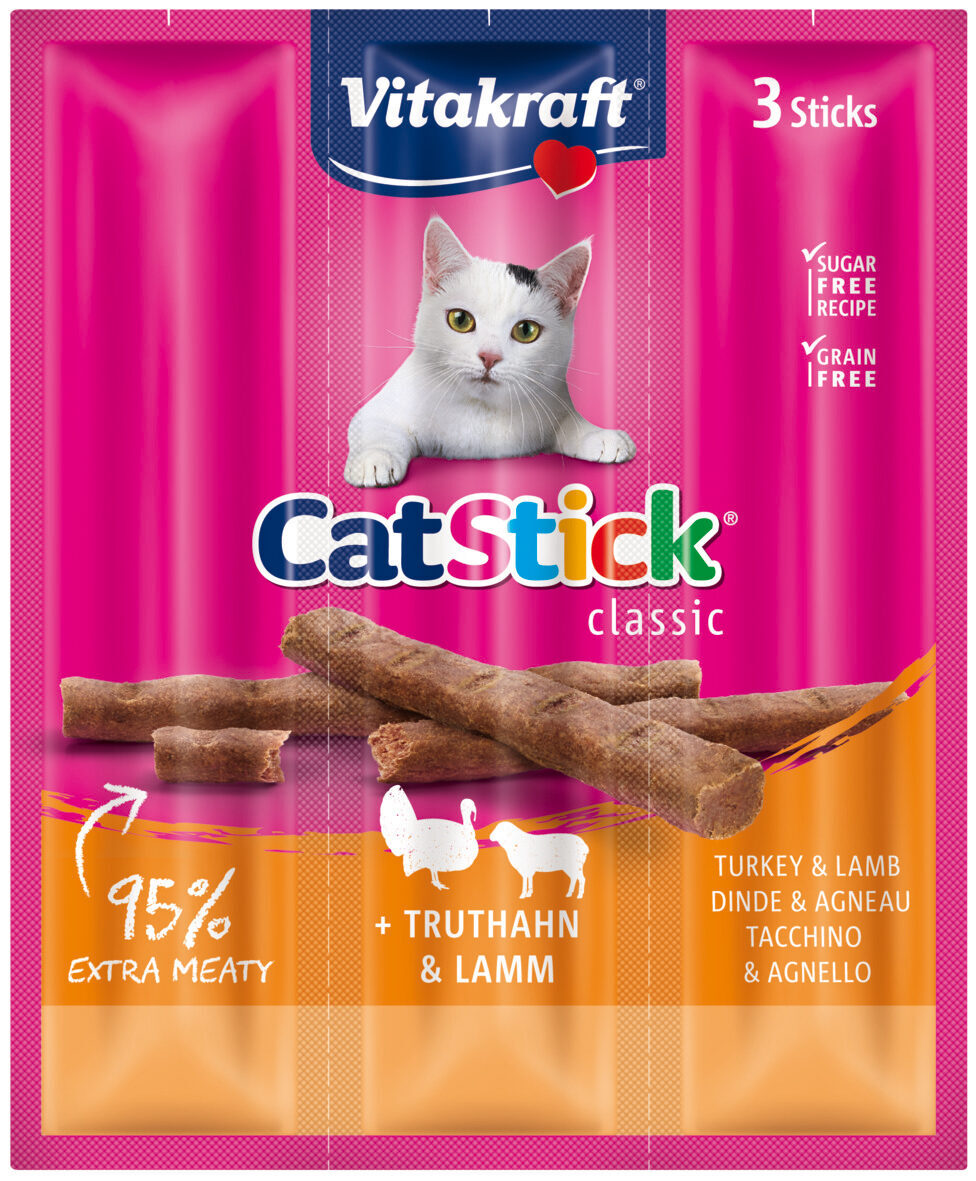 Drie heerlijke, zachte, individueel vers verpakte beloningssnacks met een extra hoog vleesgehalte van maar liefst 95% waar elke kat gek op is. Door de groeven is de Cat-Stick eenvoudig in stukjes te breken.