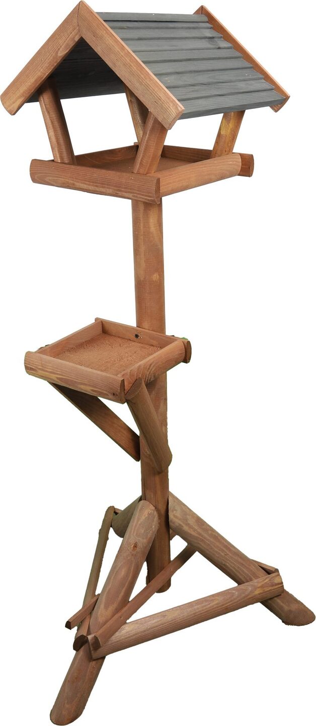 Het bruine vogelhuis met gepotdekseld dak op poot is een duurzaam voederhuis voor vele soorten buitenvogels. Het voederhuis is makkelijk te verplaatsen en is gemaakt van vurenhout.